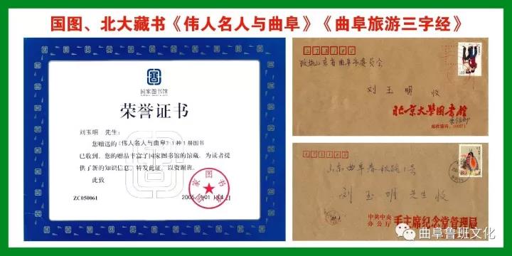 十年磨一剑。《伟人名人与曲阜》(上卷)上溯三皇五帝、古圣先贤和历代帝王,下著伟人领袖、外国政要、文化名人。文中既有古圣先贤的哲理名言,又有当代伟人领袖的重要题词指示。具有集史实性、知识性、趣味性、指导性、建设性、可读性为一体的鲜明特点。作品被中国中外名人文化研究会、中国新闻文化促进会评为优秀作品,先后被北大、清华和国家图书馆收藏。作者荣获杰出贡献奖,2003年12月27日,受到全国政协领导的亲切接见并合影留念。2014年,由中共曲阜市委书记李长胜和中国孔子研究院院长杨朝明博导作序的含有《习近平与曲阜》纪实文章的《伟人名人与曲阜》(第二卷)出版发行。