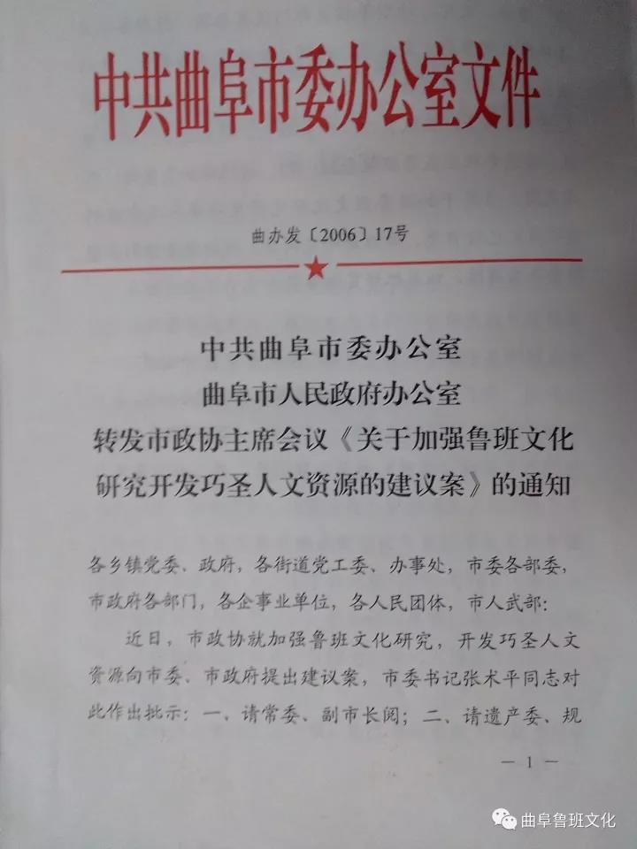 2006年初,作为曲阜市政协副秘书长兼教科文卫体委员会主任的刘玉明,对曲阜鲁班文化进行了深入调研,起草了《曲阜市政协主席会议关于加强鲁班文化研究、开发巧圣人文资源的建议案》。提出十点建议:一是成立鲁班文化研究促进会,加强巧圣匠圣文化研究;二是纳入有关规划,实行有序开发;三是挖掘整理鲁班史料,举办学术研讨会和展览;四是雕塑鲁班圣像,展现巧圣风采;五是用鲁班名字命名和设奖,增加鲁班在曲阜的直观影响;六是建设鲁班文化公园,增加科技型旅游景点;七是修复鲁班文化古迹,建设鲁班纪念馆;八是学习香港经验,在鲁班诞辰举办节庆活动;九是搭建发明创新擂台,鼓励各行各业自主创新;十是开发鲁班文化产品,丰富旅游工艺品市场。曲阜市政协主席会议研究,同意将《建议案》提交市委、市政府。4月17日,市委、市政府向全市批转了《建议案》,要求由市政协牵头,成立由市政协主席赵元山兼任会长、副主席刘海涛为常务副会长、刘玉明为秘书长的鲁班文化研究促进会。经过紧张筹备,2006年6月16日,召开了曲阜市政协鲁班文化研究促进会成立大会暨纪念鲁班诞辰2513周年座谈会,开启了新时期纪念工圣鲁班,弘扬工匠精神的先河。2007年6月16日,曲阜鲁促会召开第一次会员大会,成功转型为合法的社团。协助文化部门成功将曲阜鲁班传说、楷木雕刻和琉璃瓦申报为国家级非物质文化遗产。