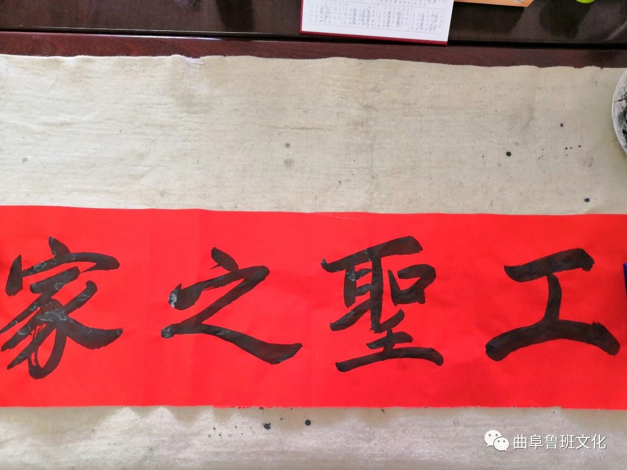 2月11日(除夕)下午6点半,班门传人、曲阜市人大原副主任、鲁研会副会长、古建设计院院长李一中带领国家级非遗鲁班传说代表性传承人、副会长兼秘书长刘玉明,国家级非遗琉璃瓦制作技艺省级传承人、市人大常委、副会长、园林古建集团董事长王树宝,副会长、曲阜建筑业协会会长、市建筑工程公司总经理孔繁铭,常务理事、金利门业公司董事长王殿中,常务理事、山东金德建筑公司董事长刘德虎,中建八局员工孔祥涛,曲阜园林古建集团员工王德兵等,前往鲁班殿向敕封北城侯鲁公输子圣像上香行礼,王殿中等还摆上供果等。在曲阜鲁班故里园大门贴上曲阜市政协原副主席、山东省书协会员张连坡书丹的东鲁绳规远垂万世兴华夏,北城俎豆永荐千秋耀班门春联,展现工圣之家,春回大地。祖师护佑,班门安居。