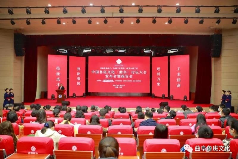 在中国文联民间文艺家协会原书记罗扬和山东省教育厅二级巡视员梁斌言为“曲阜鲁班文化传承中心”揭牌后发布报告会转入第二阶段。由中国非遗保护研究中心理事长李占惠主持高端专家学术报告会。罗扬、梁斌言和全国政协委员、国际儒联副理事长、中国孔子研究院院长杨朝明先后作了古今闪耀光辉的工匠精神、高职教育工匠精神培育、儒家文化与工匠心性精彩报告,受到与会专家学者和师生的热烈欢迎。