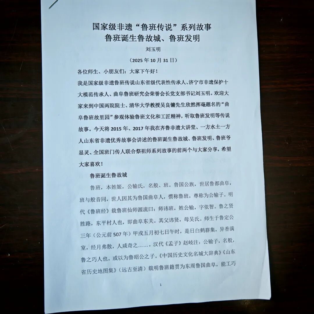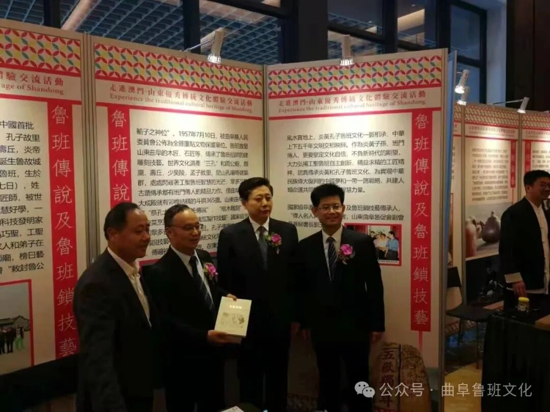 传承人曾于2015年1月15日和2017年2月23日按省市非遗保护中心要求,在山东省文化厅主办的齐鲁非遗大讲堂、一方水土一方人山东省优秀非遗故事会讲述《班门圣地祭工圣,鲁班传说正传承》和《鲁班诞生鲁故城》《鲁班发明》《鲁班爷显灵》《全国班门传人联合祭祖师》等《鲁班传说》系列故事,受到中外专家听众关注好评。此后的2017年5月和2018年10月、11月传承人刘玉明应邀先后随山东省政协、山东省文化厅代表团赴香港理工大学、澳门大学、海峡两岸进行文化交流体验,展示体验国家级非遗鲁班传说及鲁班锁技艺,受到省市政协领导和港澳台师生学者、市民欢迎。这次传承人精选了国家级非遗曲阜“鲁班传说”系列故事中的《鲁班诞生鲁故城》《鲁班发明·锯是怎样发明的》等,分四场次为来自孔子作春秋处的息陬镇小学师生演讲,深受师生们欢迎。传承人还向带队的学校领导和老师赠送了两本全国人大代表、山大儒学高等研究院特聘教授、孔子研究院原院长、曲阜鲁班研究会会长杨朝明主编的《曲阜的鲁班·世界的鲁班》和一份第63期《鲁班研究》。