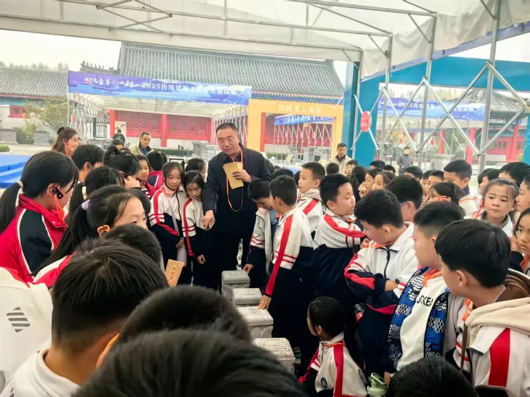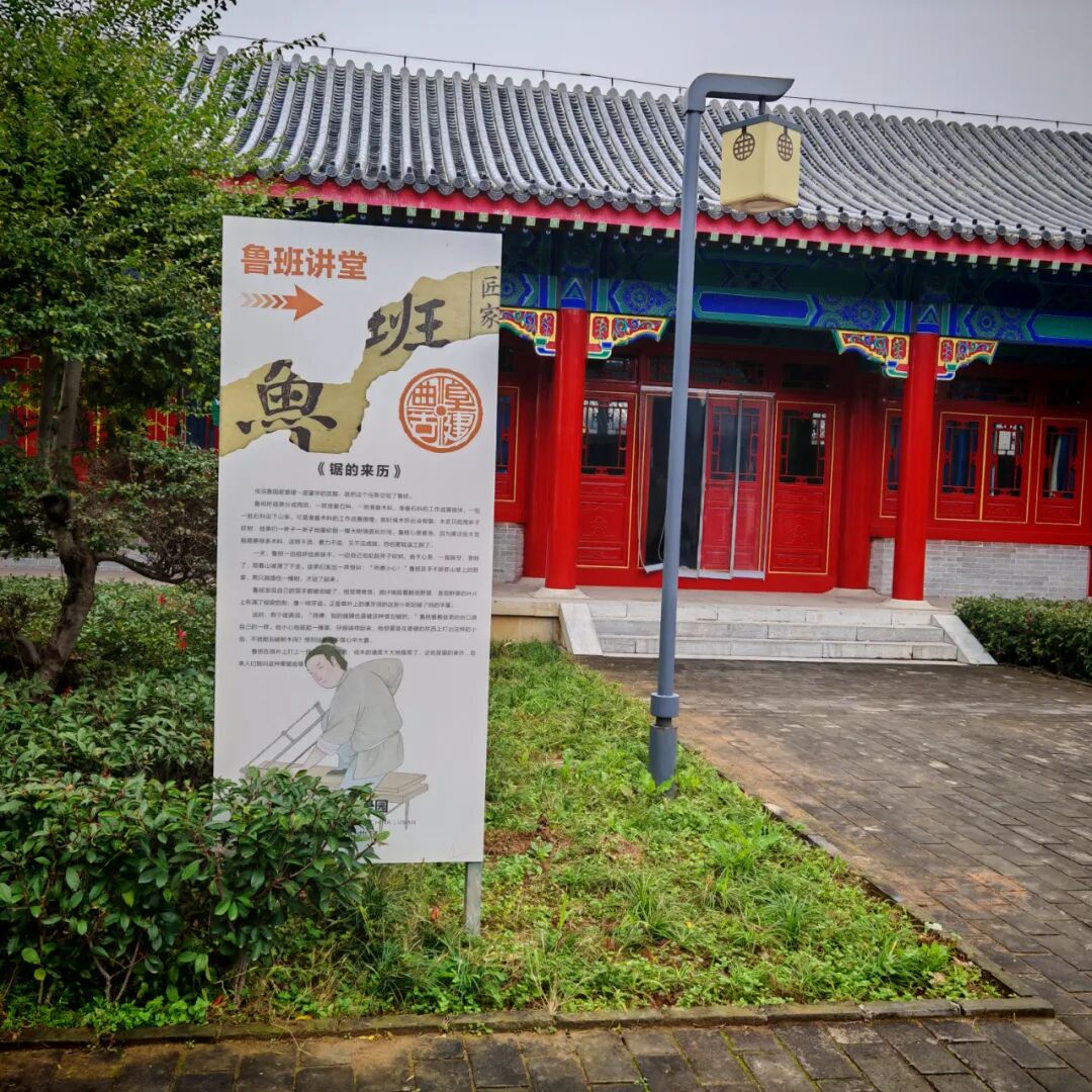 10月31日(周五)下午,至圣先师孔子作《春秋》处的曲阜市息陬镇小学四五年级师生400人,乘座7辆大巴赴中国两院院士、清华大学教授吴良镛先生挥毫题名的“曲阜鲁班故里园”开展研学游活动,体验国家级非遗“鲁班传说”、工匠精神和鲁班技艺。学生们在老师和导游带领下,从哲匠始祖牌坊前下车列队步行到鲁班广场,瞻仰春秋战国时期的鲁都曲阜人工圣鲁班铜像,观赏吴良镛大师挥毫题名的“曲阜鲁班故里园”和孔子后裔孔祥胜书丹的“哲匠始祖神州百工敬,大成智慧世界万代传”春联,中国书协会员、曲阜书协主席、市科技局原局长韩益书丹的“东鲁绳规远垂万世兴华夏,北城俎豆永荐千秋耀班门”楹联。在全国政协原主席李瑞环题写匾额的鲁班殿前,曲阜鲁班研究会会员、曲阜市古建文化商会秘书、有为文化旅游公司董事长鞠宪桐主持讲解本次鲁班文化研学游的课程安排。在鲁班殿前大课堂,举行拜师礼,奏响《鲁班颂》节歌,师生们在司仪主持下,肃穆站立,整理衣冠,集体向工圣鲁班祖师三鞠躬。在鲁班故里园东路暨鲁班文化传承中心第二课堂鲁班讲堂,听取国家级非遗“鲁班传说”山东省代表性传承人,济宁市非遗保护十大模范传承人、曲阜鲁班研究会荣誉会长、党支部书记刘玉明讲述国家级非遗“鲁班传说”。