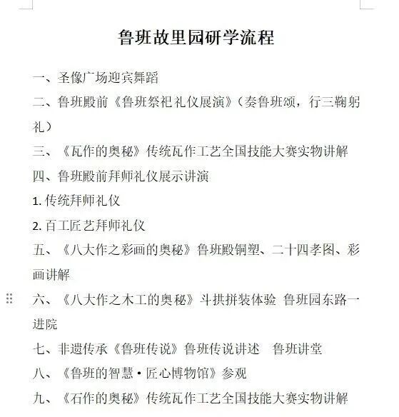 附:有为鲁班故里园研学活动《研学流程》,以飨班门传人、同仁和网友。