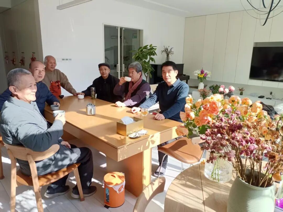 然后国伟等还陪同韩国诗友金洪永教授前往鲁班大道北的崇德公馆,拜访曲阜诗社名誉社长薛利民先生。金洪永教授、广少奎教授先后向薛利民先生赠送了图书,孔祥伟副社长向薛利民先生送上“福寿无疆”墨宝。在座谈交流后,薛利民先生让家人拿好洒和特色饭菜款待大家。话别时,薛先生还请班门传人刘玉明给市政协原主席、曲阜鲁班研究会首任会长赵元山,原副主席傅鸿泉捎去其新作《秀句集》。