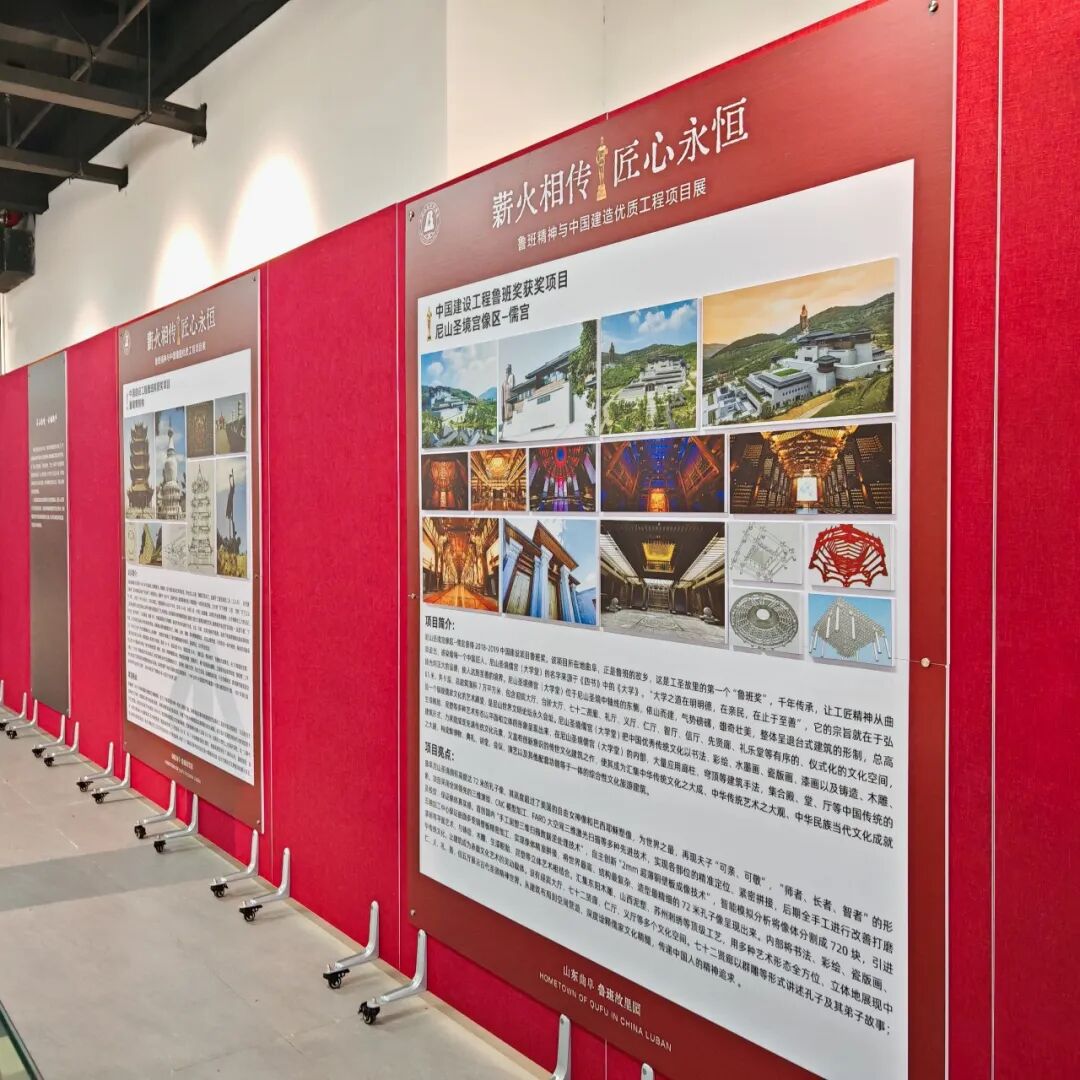 在曲阜鲁班故里园大门前,认真观赏中国两院院士、清华大学教授吴良镛先生欣然挥毫题名的“曲阜鲁班故里园”和孔子后裔孔祥胜书丹的“哲匠始祖神州百工敬,大成智慧世界万代传”和中国书协会员、曲阜书协主席韩益书丹的“东鲁绳规远垂万世兴华夏,北城俎豆永荐千秋耀班门”楹联。在门厅内观看“国家级非遗鲁班传说传承示范点”“山东城市建设职业学院大学生鲁班文化育人基地”“济宁市科普教育基地”等标牌。